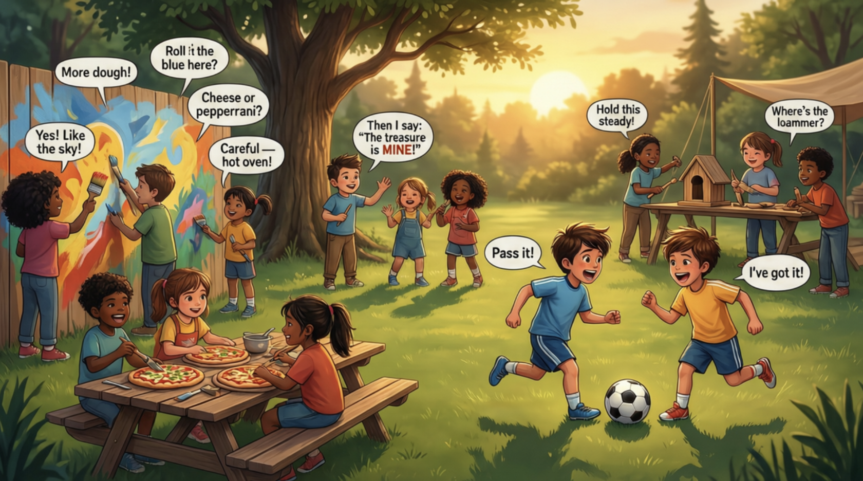 Когда ребёнок играет, он не думает: «Я учусь». Он думает: «Я побеждаю», «Я помогаю», «Я создаю». А язык становится естественной частью этого процесса.